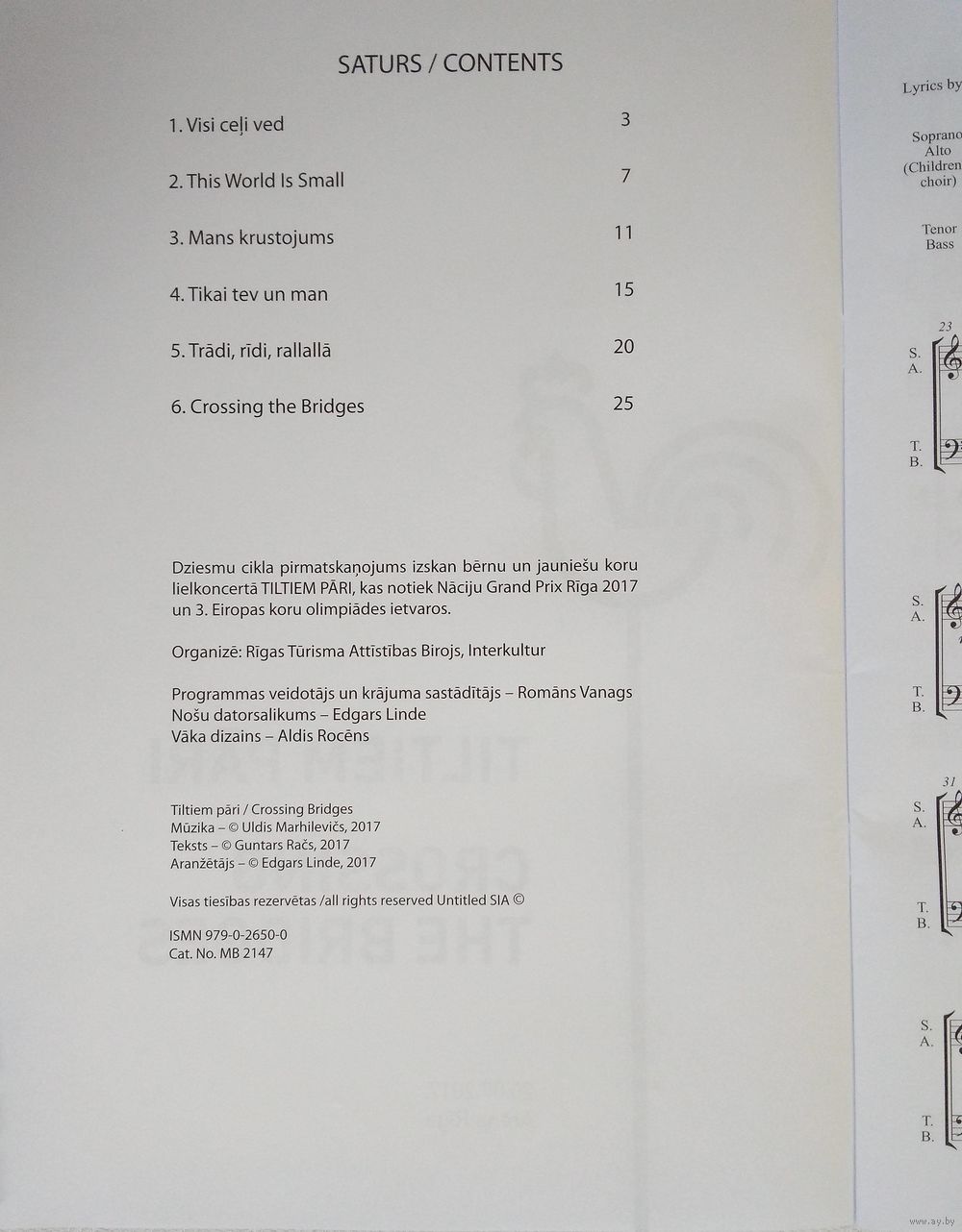 Хоровые партитуры Европейского конкурса хоров Crossing the Bridges в Риге, 20.07.2017.