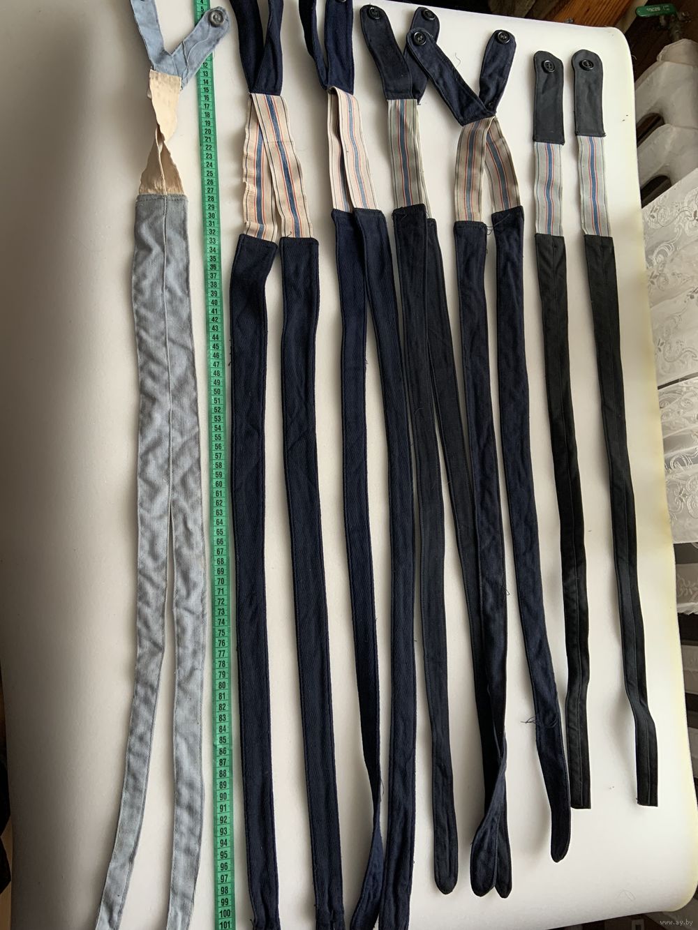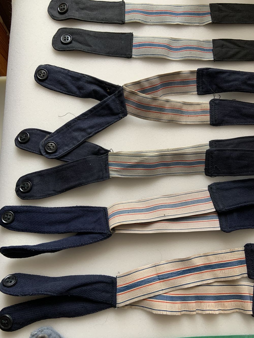 | Светлый от х/б комбеза лётчиков. 4 синих от брюк лётных летних и последний чёрный от брюк тех.состава. Цена за 1. Можно использовать и на гражданских штанцах-впереди вшиваются 2 пуговки для застёжки | |