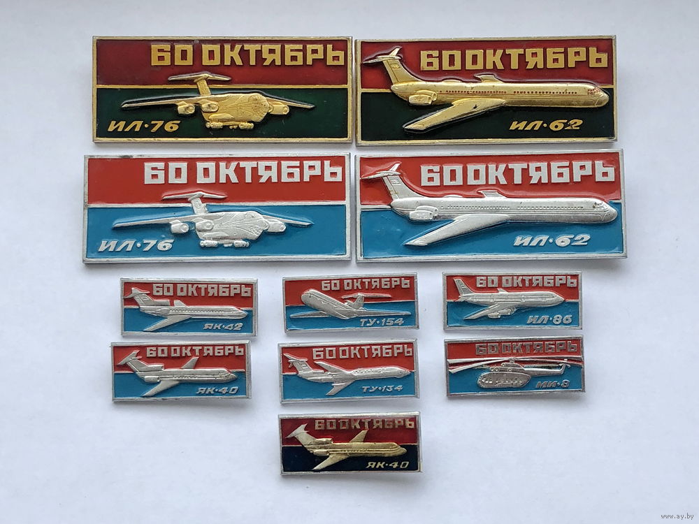 Состояние на фото. 60 Октябрь набор значков Авиация СССР. Цена за все.
