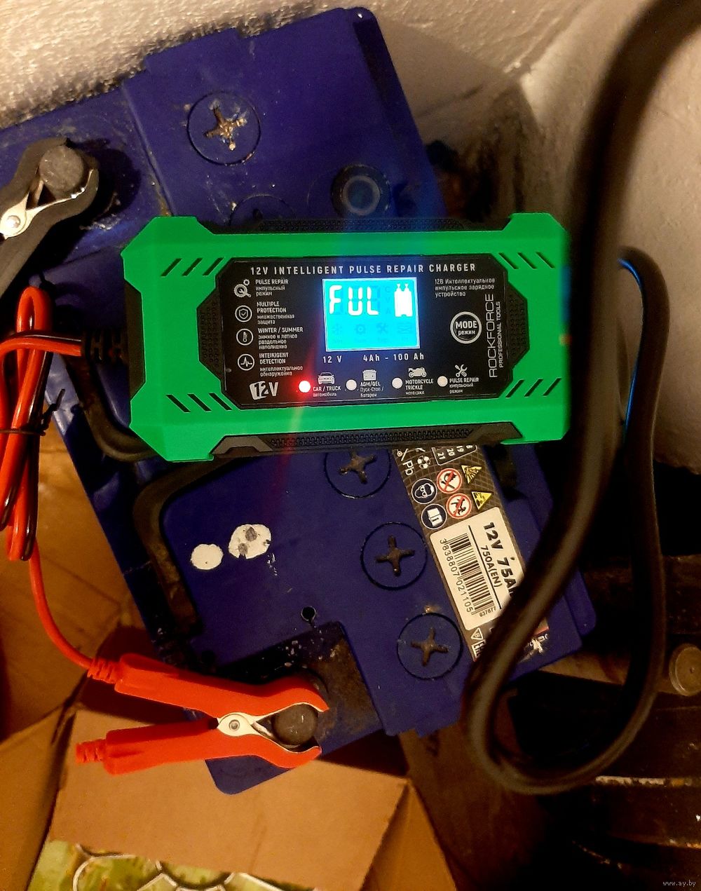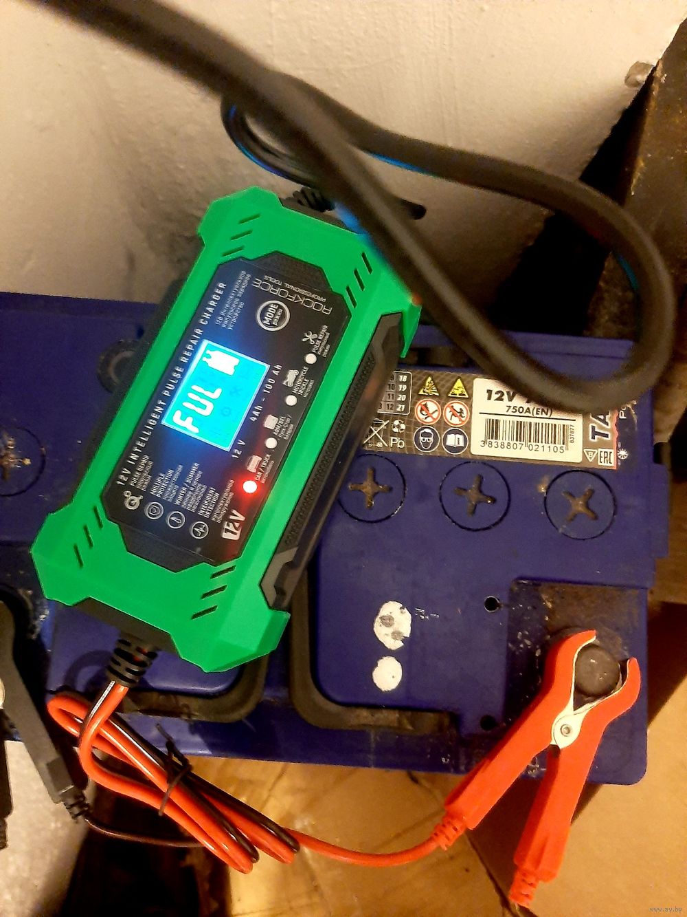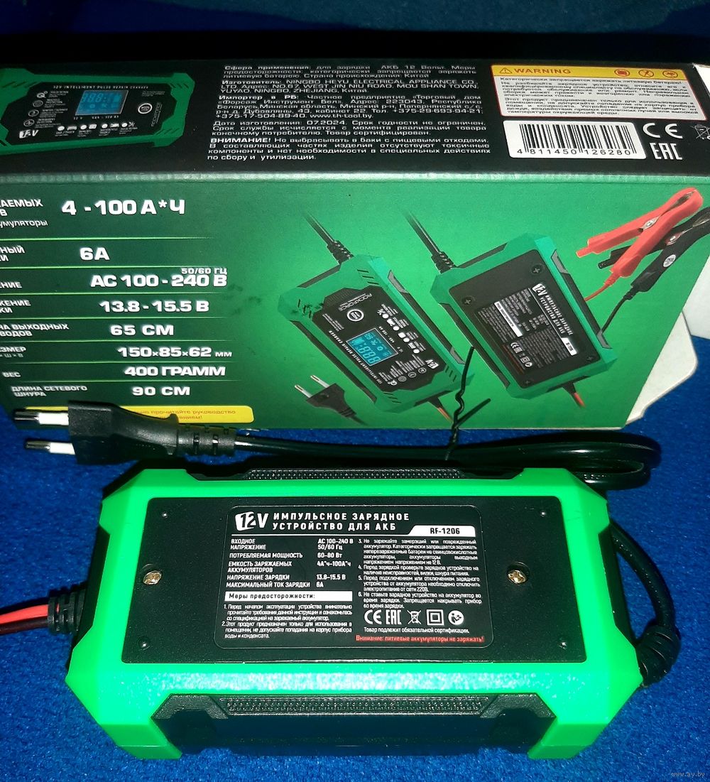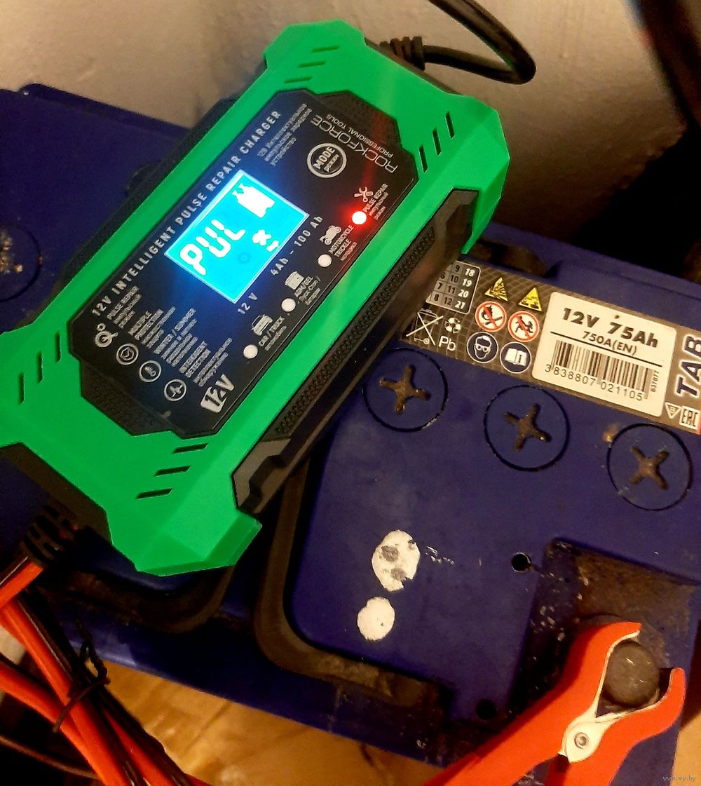 6А.Интеллектуальное зарядное.Ко всем типам аккумуляторов. От 15ah до 120ah. Есть 3 аппарата. Полностью автоматическое зарядное для авто-мото и сельхозтехники 12V, 6А. Микропроцессорное управление зарядом. Кроме литиевых акб. Имеется индикация уровня зарядки-очень хорошая вещь.Индикация тока заряда, напряжения заряда, температуры, уровня процентах заряда.
