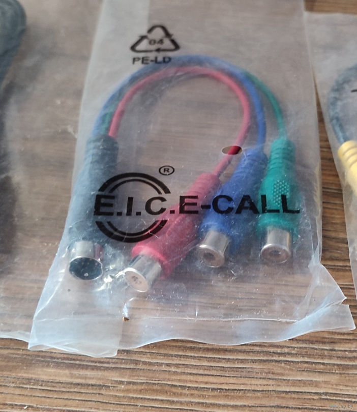 7-контактный S-Video (Mini-DIN) на 3 RCA ("тюльпаны") RGB (зеленый, синий, красный) новый в упаковке 1 шт