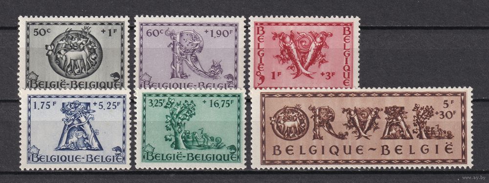 70.Bg. Бельгия. Реконструкция аббатства Орвал. 1943 г. Полная серия. Mi.##642-647. MNH.