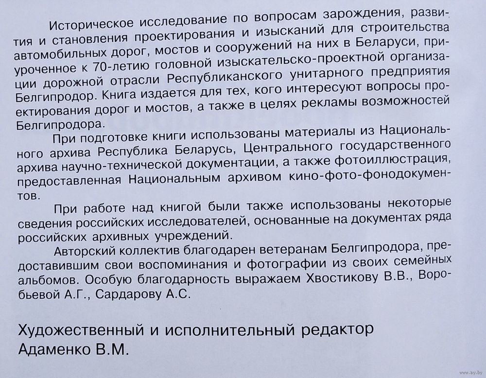 70 лет изысканий и проектирования. Белгипродор. 1932 - 2002. Минск. ООО "Три клена". 2002 г. 173 с. Твердый переплет