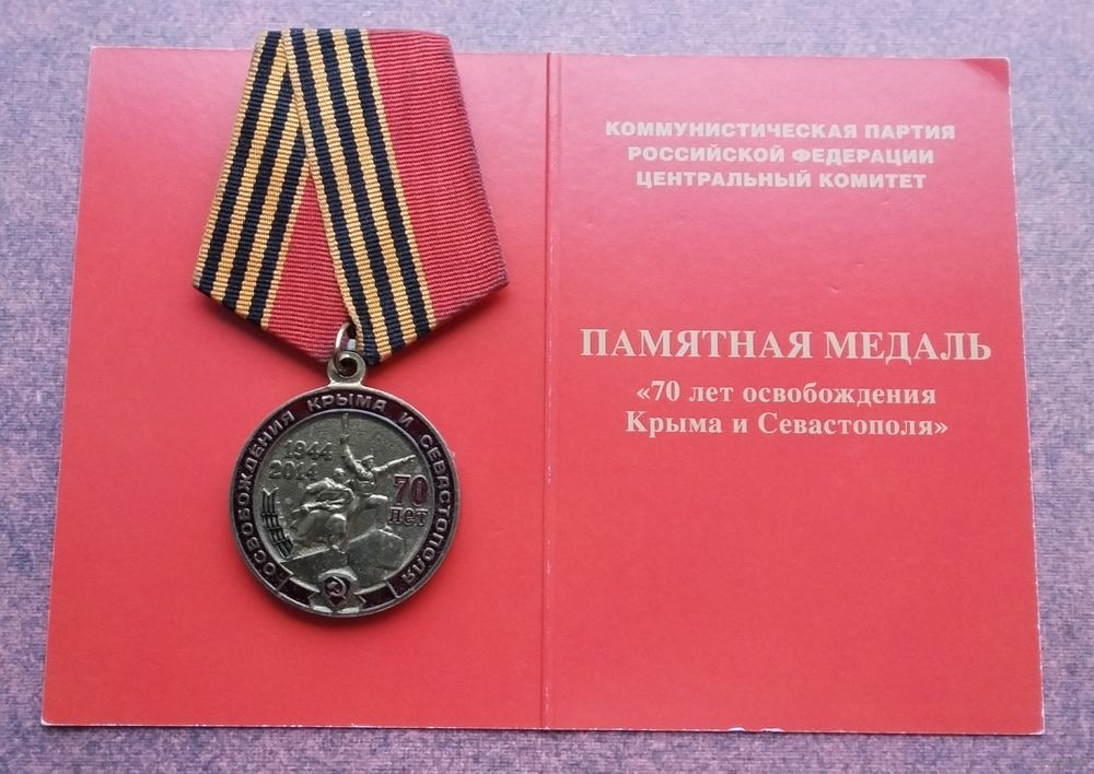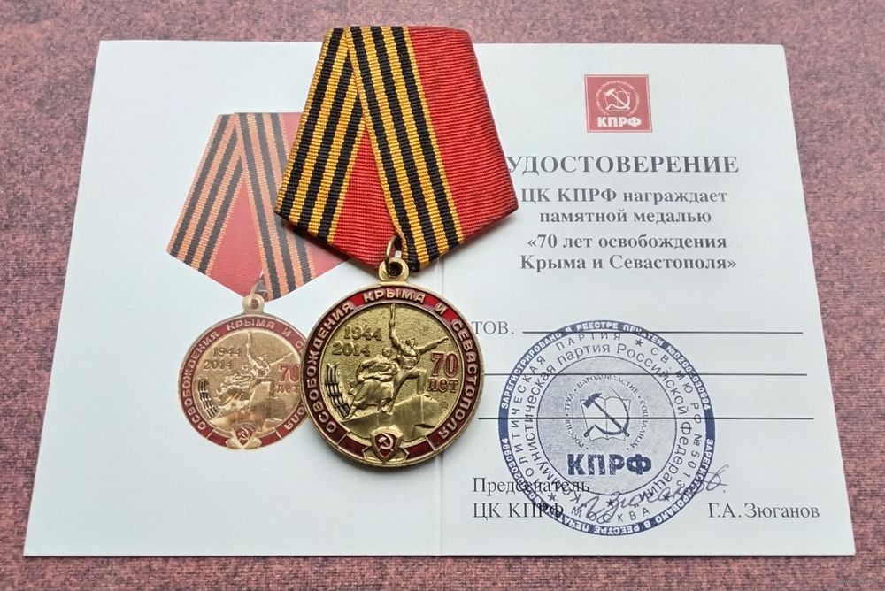 70 лет освобождения Крыма и Севастополя. КПРФ. С удостоверением.