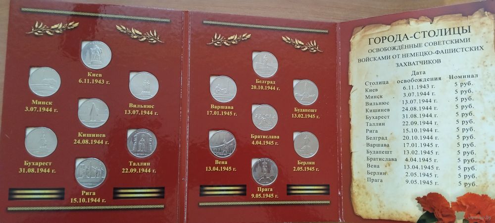 70 лет Победы. Набор 5-ти рублевых монет. Города-столицы, освобожденные советскими войсками (14 монет в оригинальном альбоме)