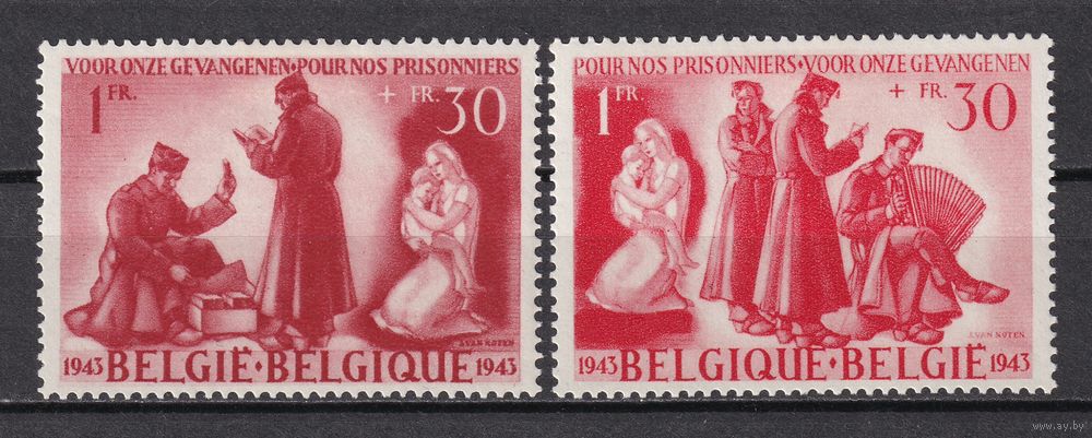 72.Bg. Бельгия. Для бельгийских военнопленных. 1943 г. Полная серия. Mi.##626-627 (* Состояние хорошее. Клей, наклейки или следы от наклейки).
