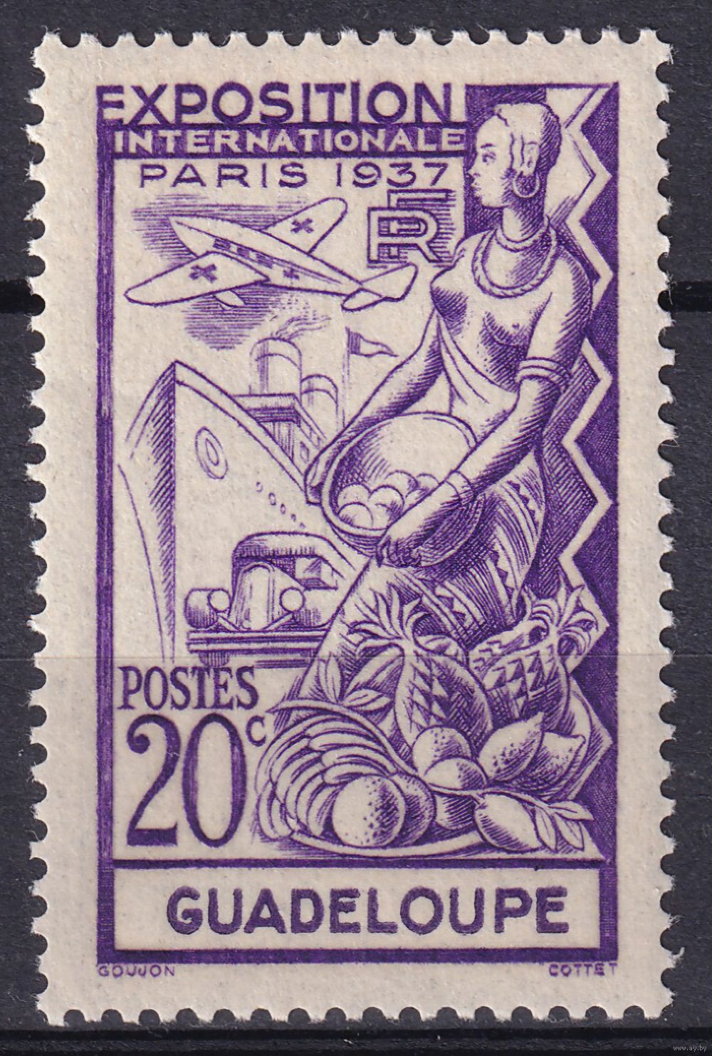 72.FrK. Франция. Колонии. Гваделупа. Всемирная выставка в Париже. 1937 г. 20C. Mi.#137. (* - слегка пожелтевший клей).