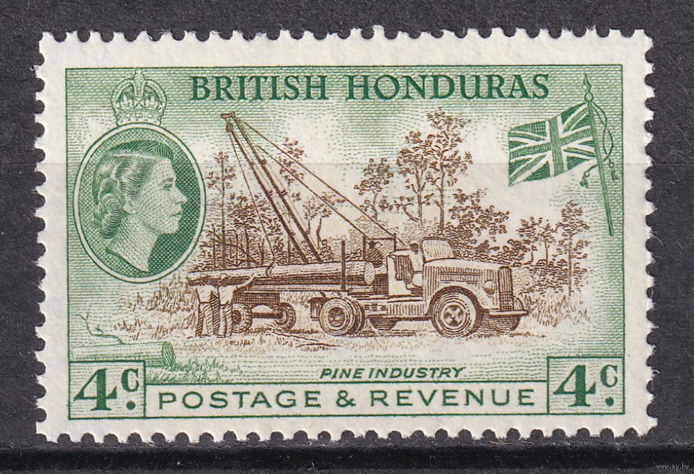 75.BrKCI. Великобритания. Колонии. Британский Гондурас. Местные мотивы. Елизавета II. 1953 г. 4C. Mi.#144A.