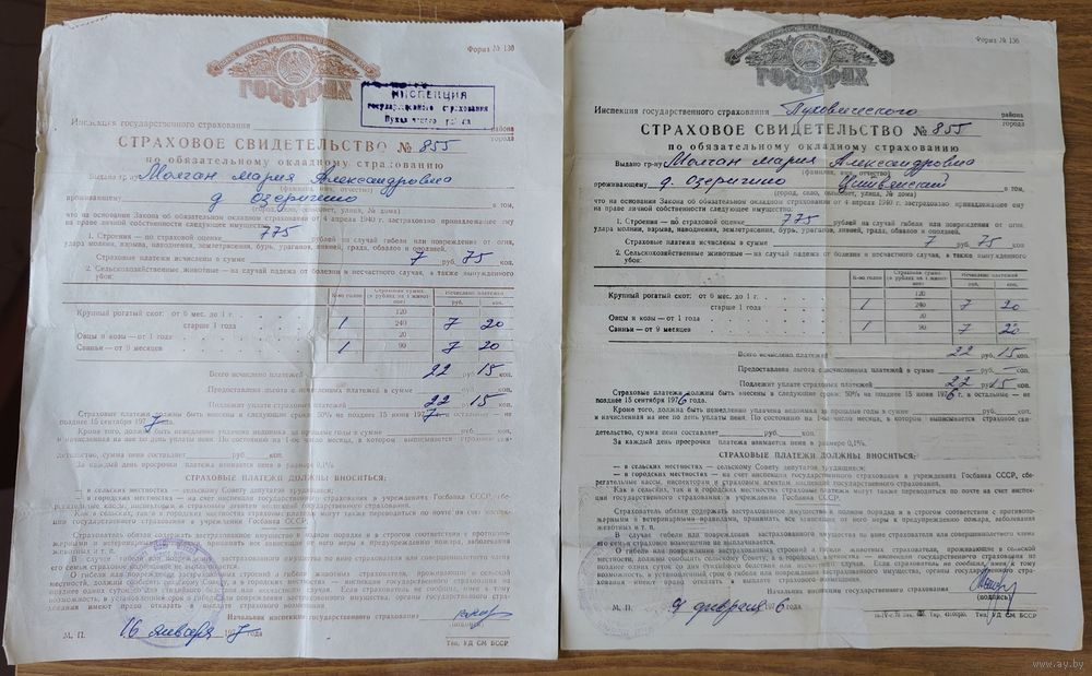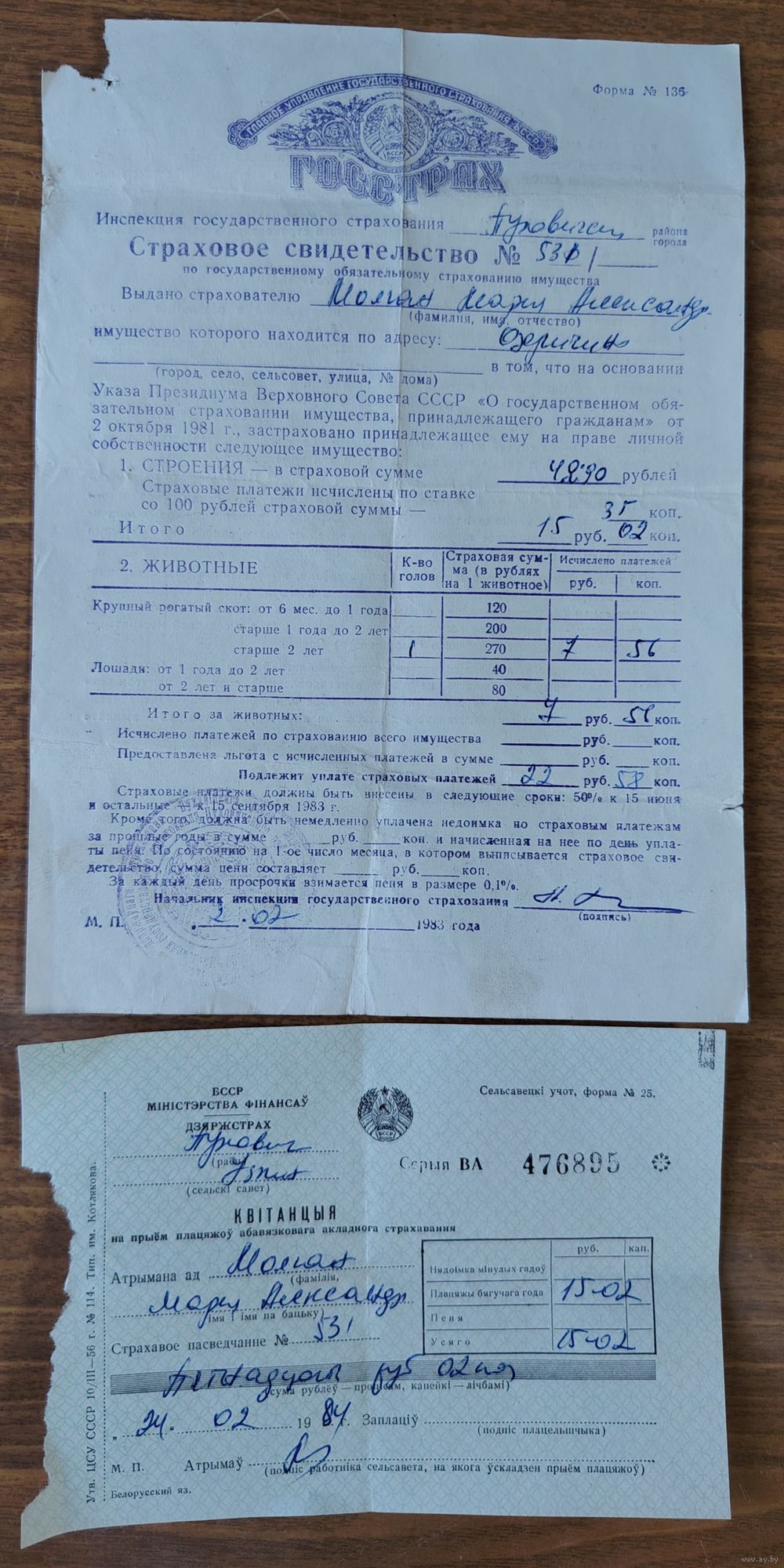 различные бланки и квитанции на одного человека 70-е и 80-е годы