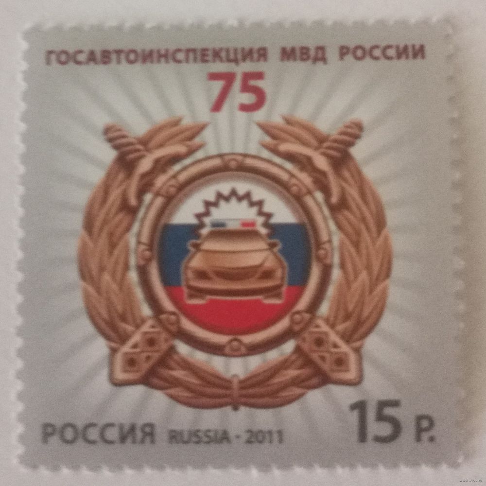 На почтовой марке изображена официальная эмблема Госавтоинспекции МВД России.