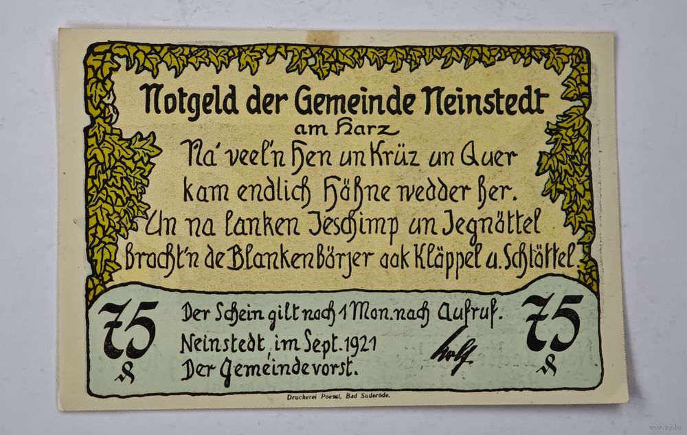 75 пфеннигов Германия нотгельд