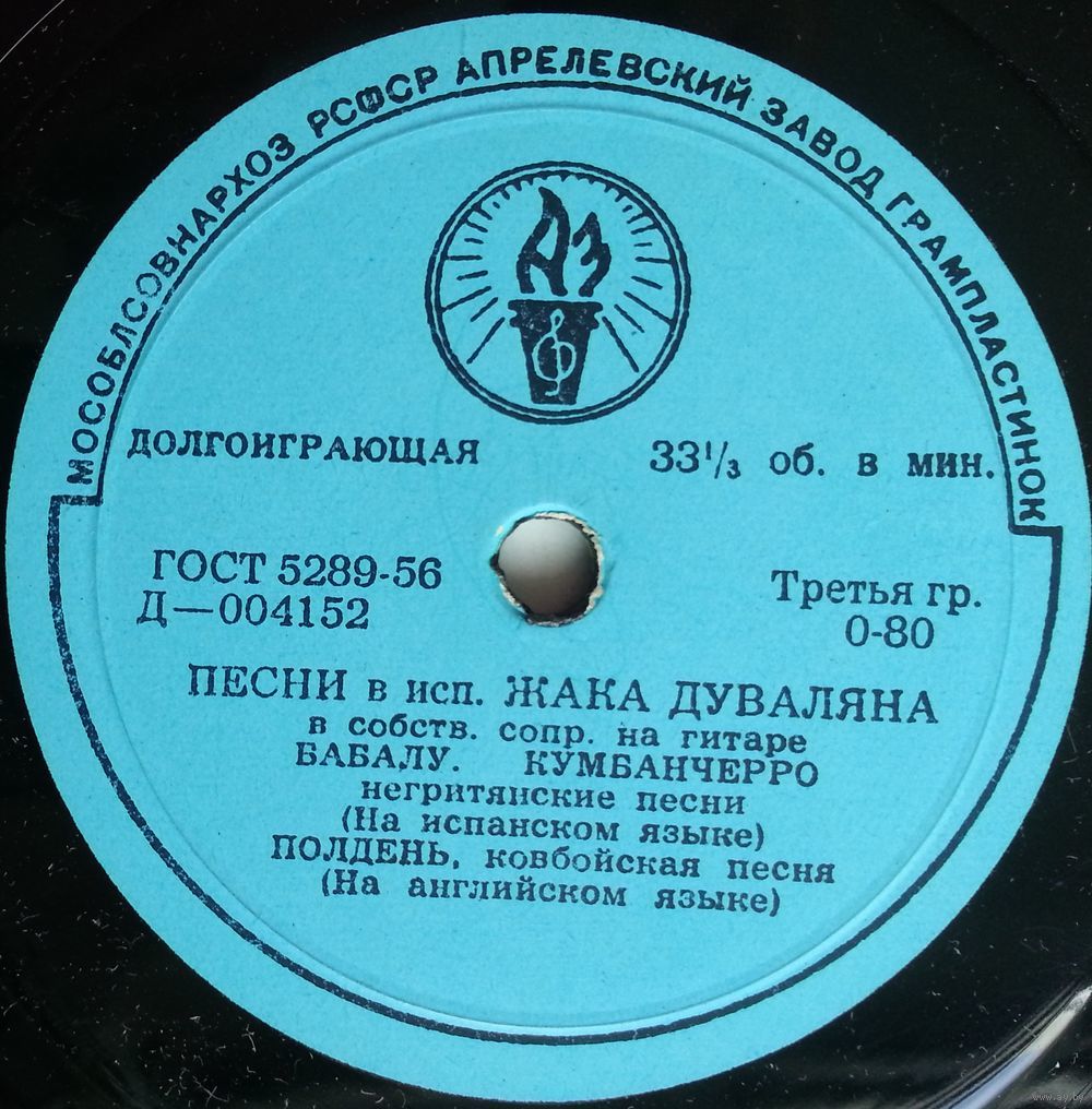 ПЕСНИ в исполнении ЖАКА ДУВАЛЯНА в собственном сопр. на гитаре