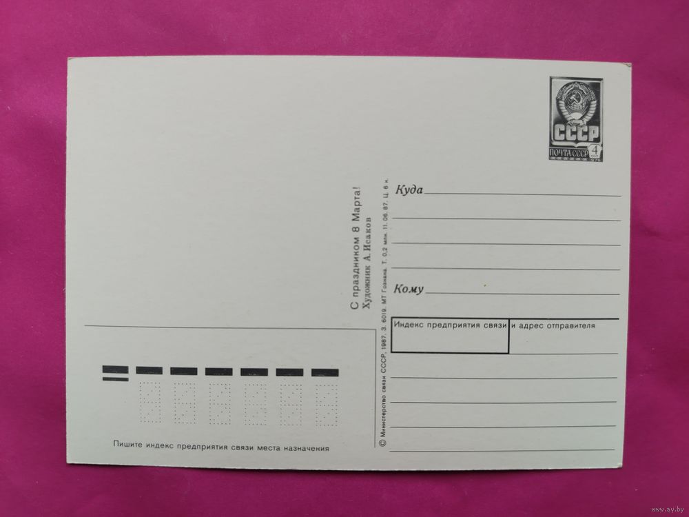 8 марта! Са святам 8 Сакавiка! Чистая. 1987 года. Исаков. 2654.