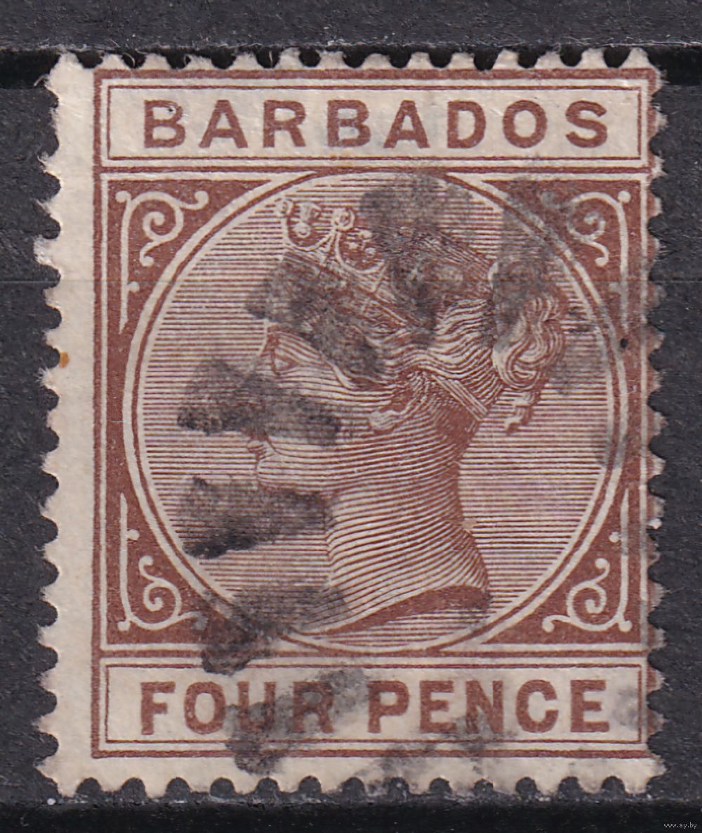 82.BrKCI. Великобритания. Колонии. Барбадос. Стандарт. Виктория. 1885 г. 4P. Mi.#37.