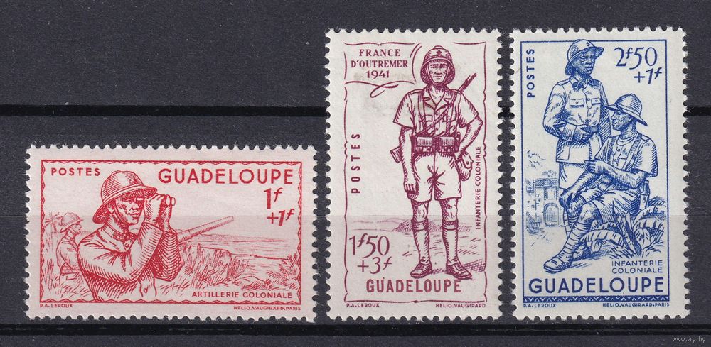 86.FrK. Франция. Колонии. Гваделупа. Национальная оборона. 1941 г. Полная серия. Mi.##163-165.