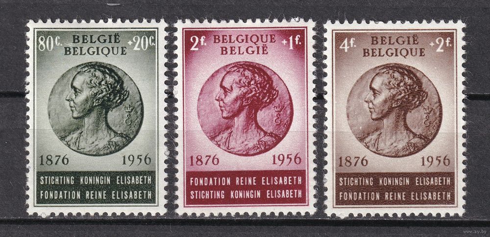 87.Bg. Бельгия. 80-летие королевы Елизаветы. 1956 г. Полная серия. Mi.##1040 -1042(* Состояние хорошее. Клей, наклейки или следы от наклейки).