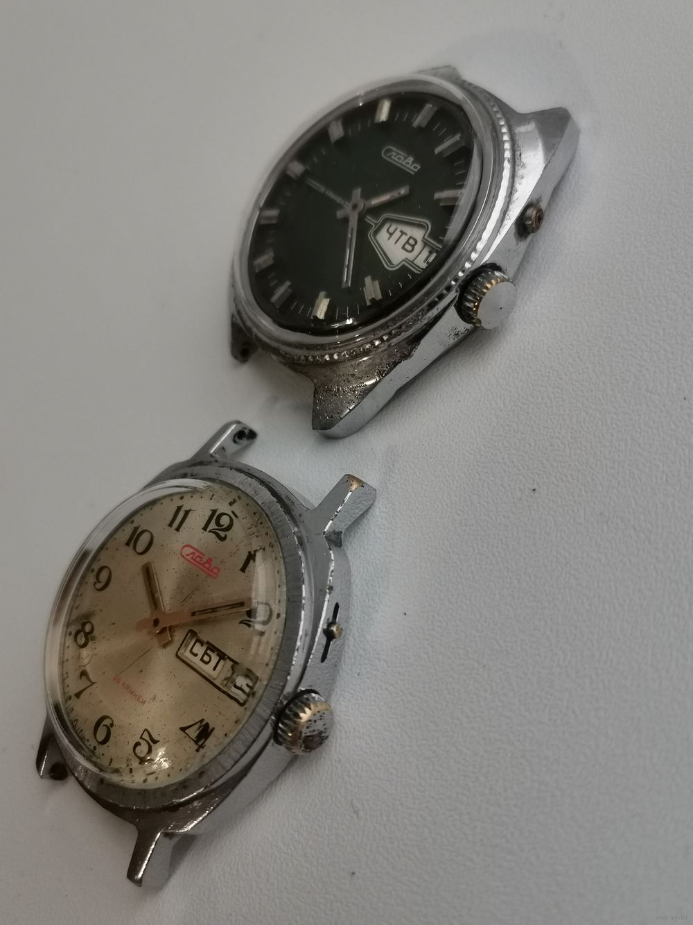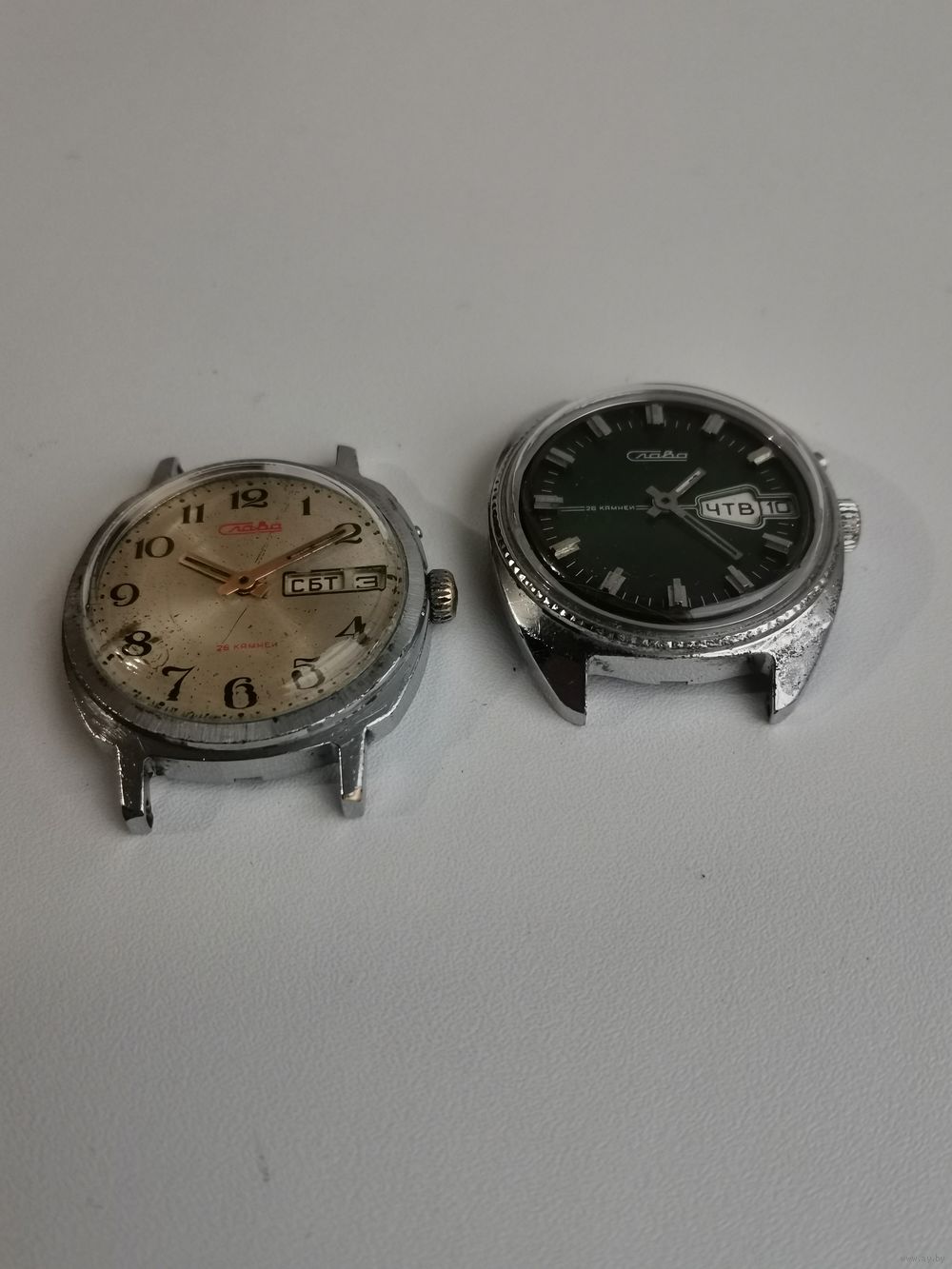 | См. фотографии. Стекла как новые. Оси балансов целые. Одни бодро тикают. Нет секундных стрелок. Календари и даты работают. | |