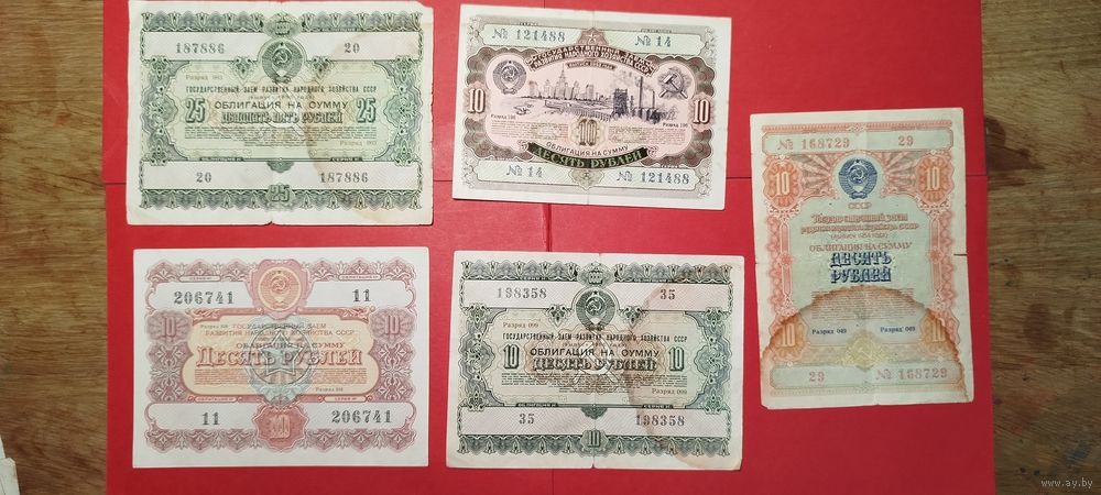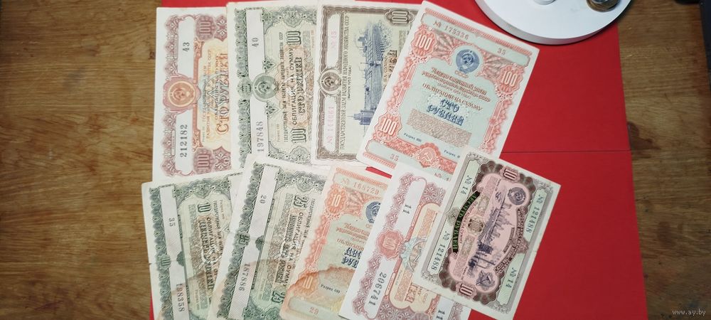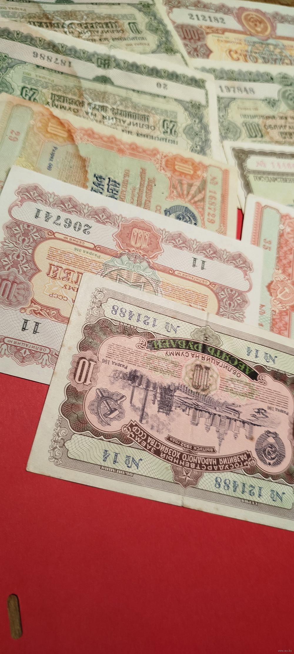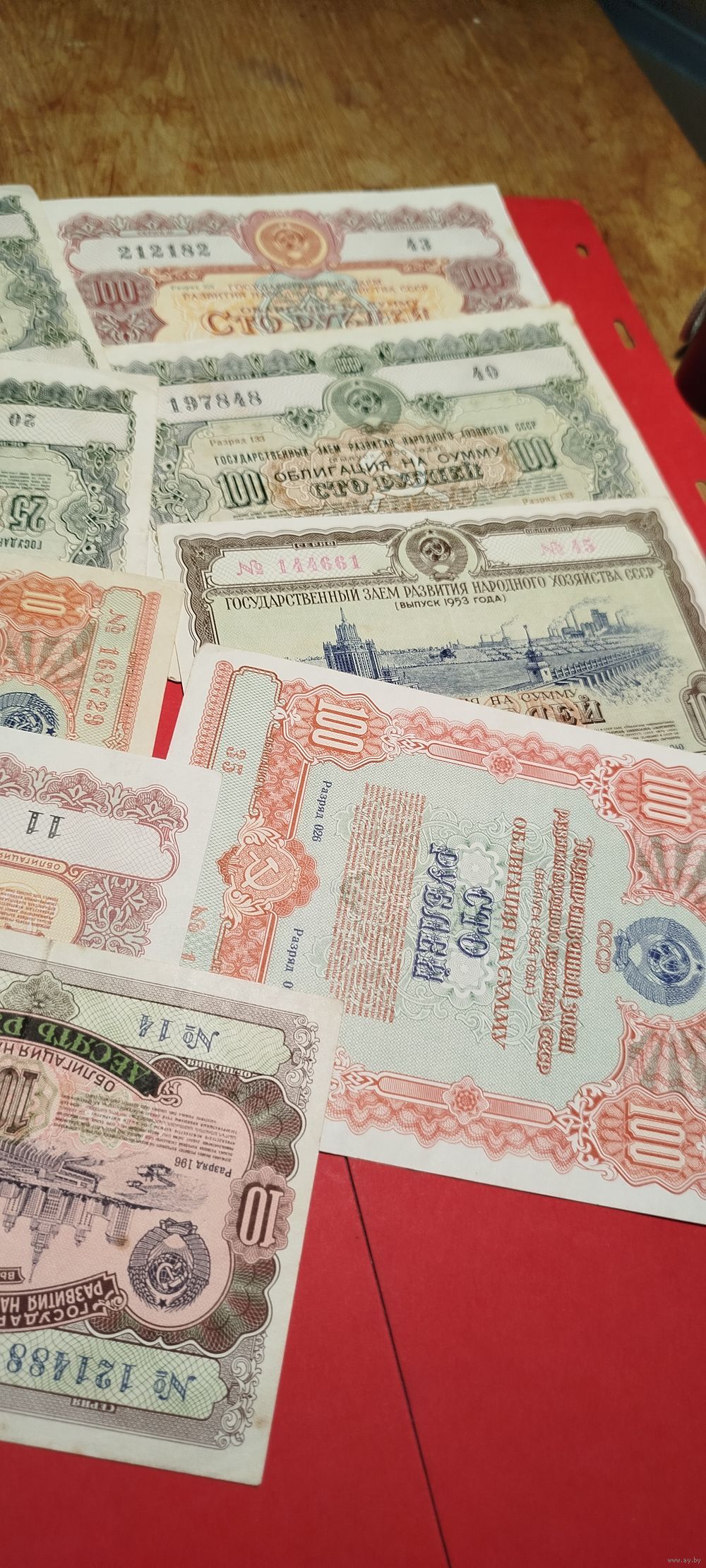 9 шт. Облигаций 10-25-100 рублей 195Х . СССР. С рубля. (20) Прекрасная Подборка.