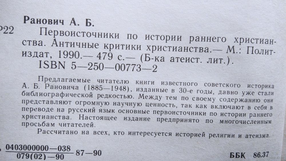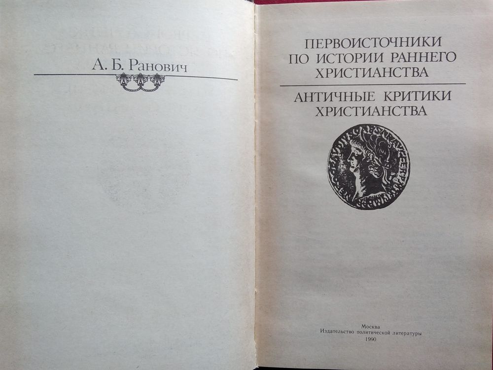 А.Б.Ранович. ПЕРВОИСТОЧНИКИ по истории раннего христианства. АНТИЧНЫЕ критики христианства // Серия: Библиотека атеистической литературы