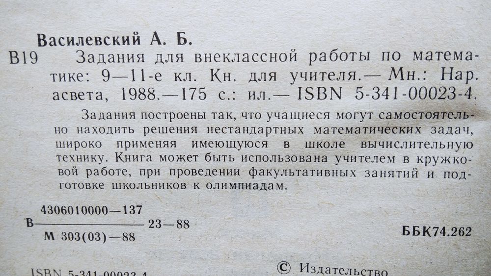 А.Б. Василевский. Задания для внеклассной работы по математике