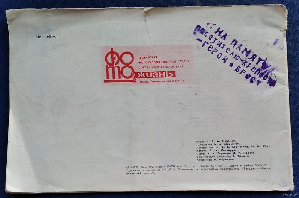 А. C. Борисовец, М. М. Слепакова, Т. А. Слесарук. Брестский краеведческий музей: экспозиция музея. Минск : "Фото и жизнь" 1967 г. 30 с. Мягкая обложка.