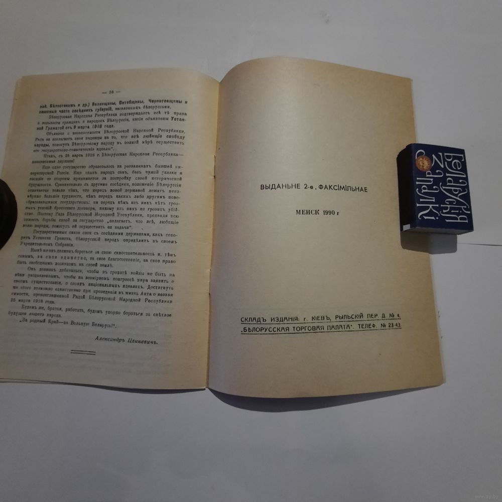 А.Цвикевичъ Краткий очерк возникновения Беларусской Народной Республики. Киев 1918г. (репринт 1990г)