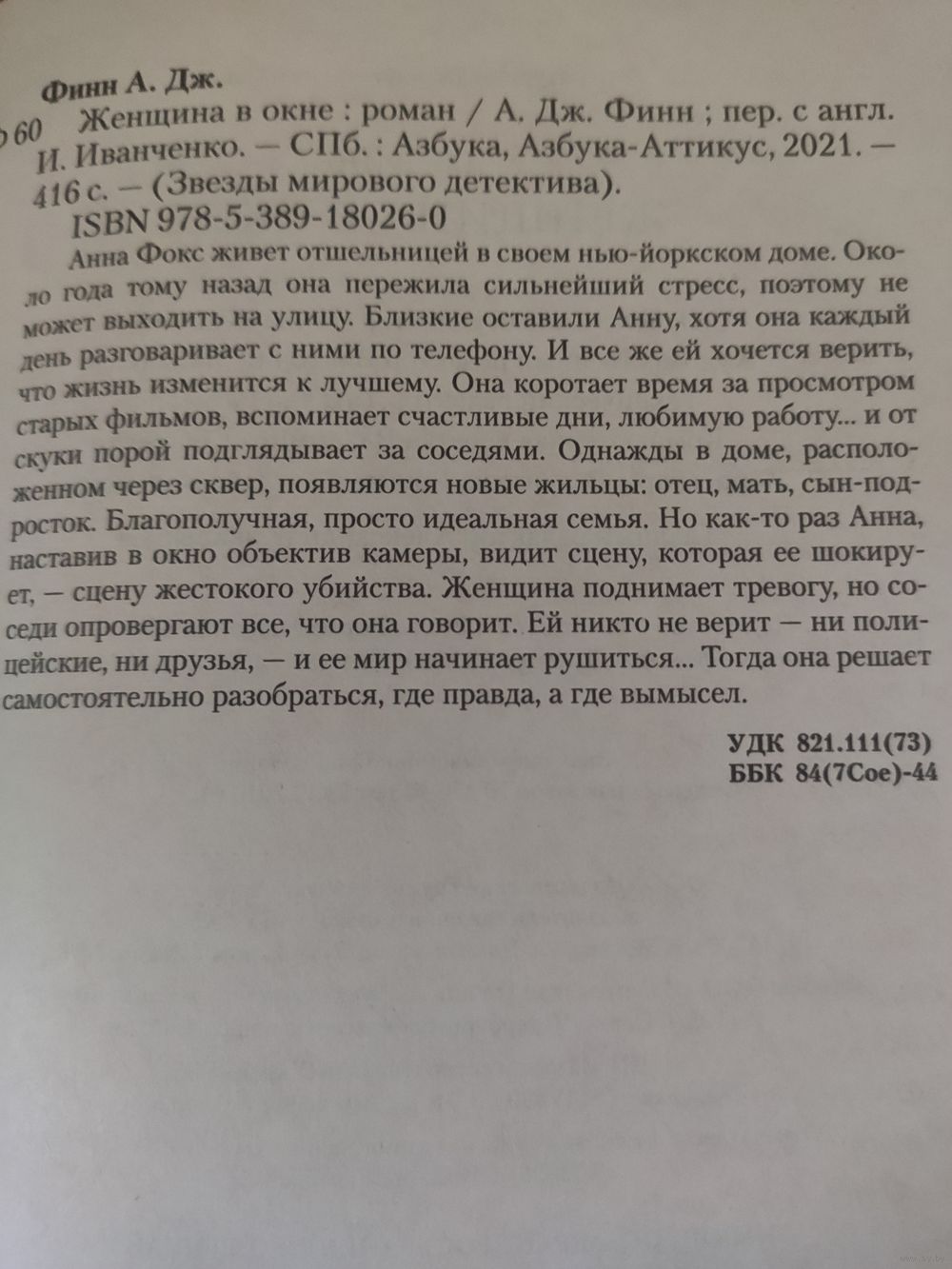 А.Дж.Финн "Женщина в окне" (психологический триллер).