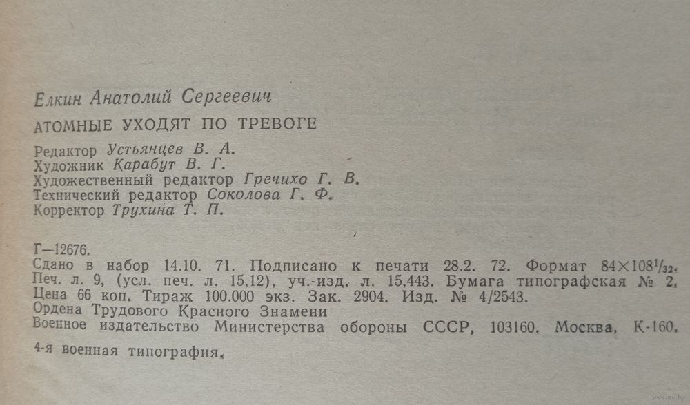 А.Елкин. Атомные уходят по тревоге. Изд. МО СССР 1972г. 288 страниц.