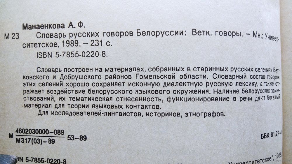 А.Ф. Манаенкова. Словарь русских говоров Белоруссии