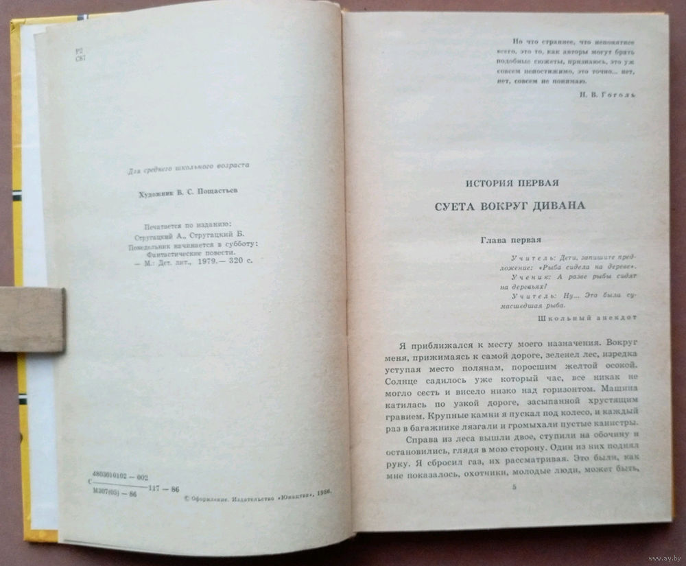 Аркадий и Борис Стругацкие - "Понедельник начинается в субботу". Серия "Библиотека приключений и фантастики". Юнацтва, 1986г. Худ. В.С.Пощастьев.