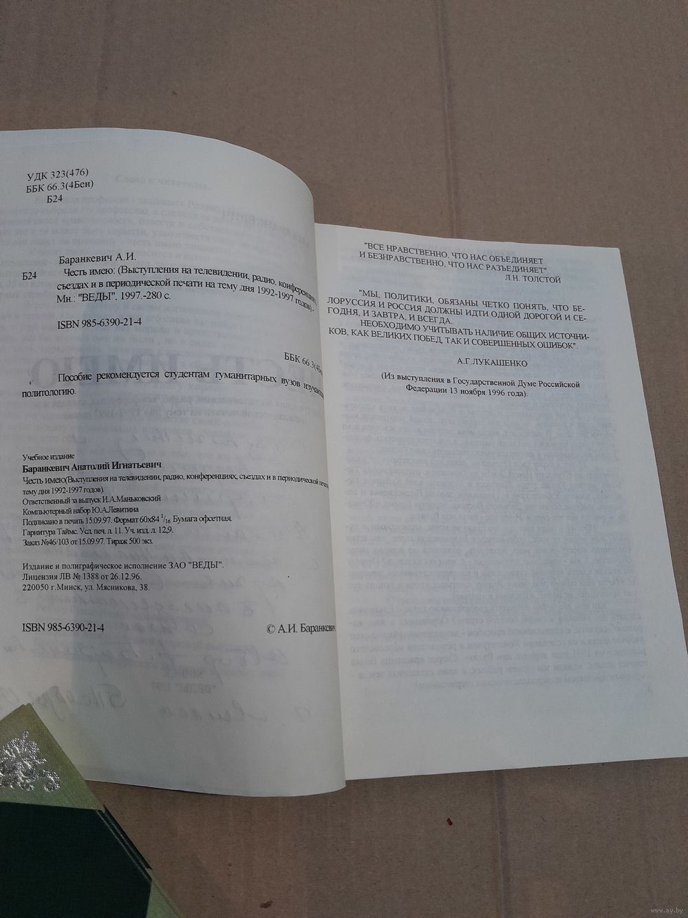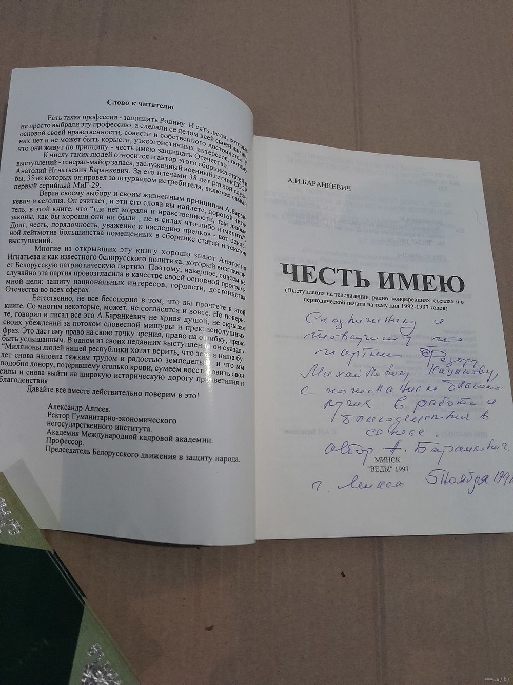 А. И. Баранкевич ЧЕСТЬ ИМЕЮ С подписью и автографом автора 1997г
