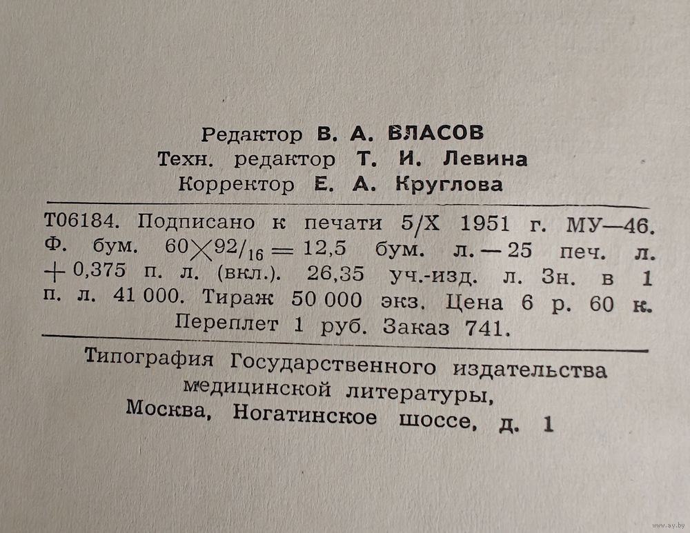 Государственное издательство медицинской литературы "Медгиз", Москва,1951г. Тираж -50 000экз. Книга из личной библиотеки.