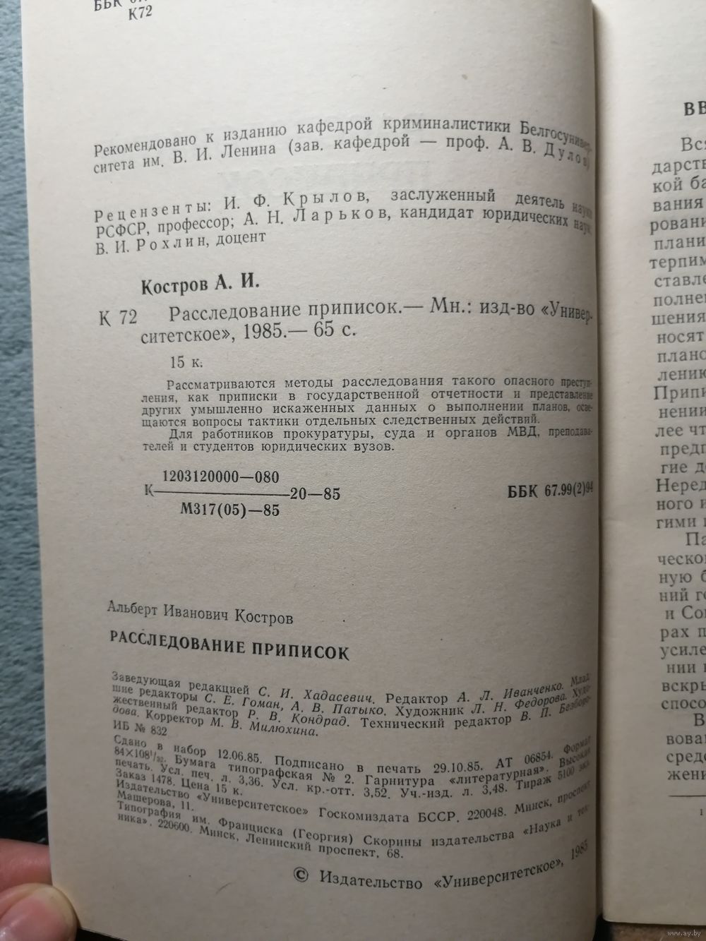 Книга «Расследование приписок» авторства А. И. Кострова — это работа советского юриста, посвященная криминалистическим аспектам выявления и расследования фальсификации статистической отчетности (приписок), особенно актуальная в условиях плановой экономики СССР, и она является важным источником в юриспруденции для специалистов в области борьбы с экономическими преступлениями и следственной практики.