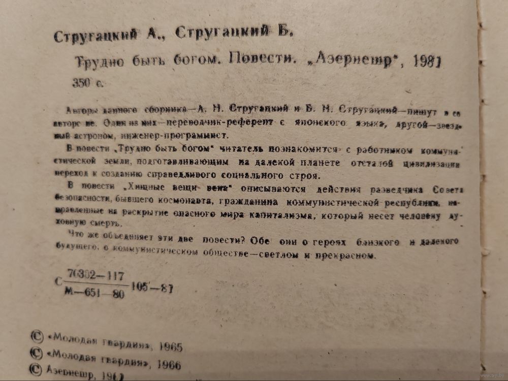 А. и В. Стругацкие. Трудно быть Богом. 1980 (81?).