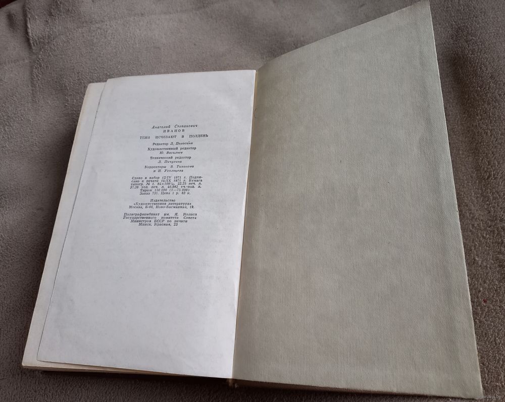Книга А. Иванова "Тени исчезают в полдень", 1971 год. Издательство "Художественная литература", Москва, тираж 150 000 экз.