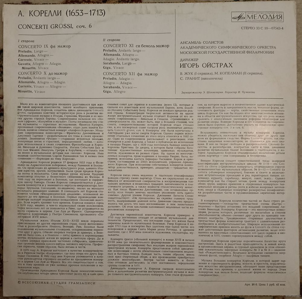 А. Корелли - Concerti Grossi, соч. 6. Дирижер Игорь Ойстрах.