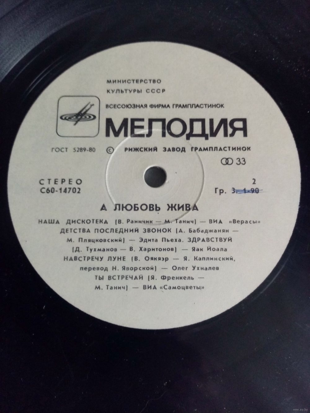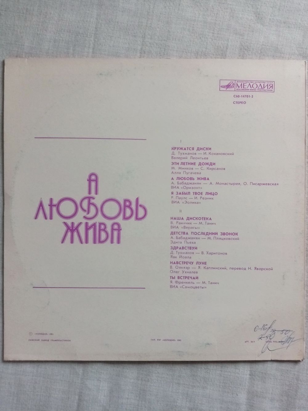 А любовь жива . LP 1982 г В. Леонтьев, А. Пугачева, Яак Йоала и др. "Диалог". Раймонд Паулс, ''Оризонт'', ''Эолика'', ''Верасы''