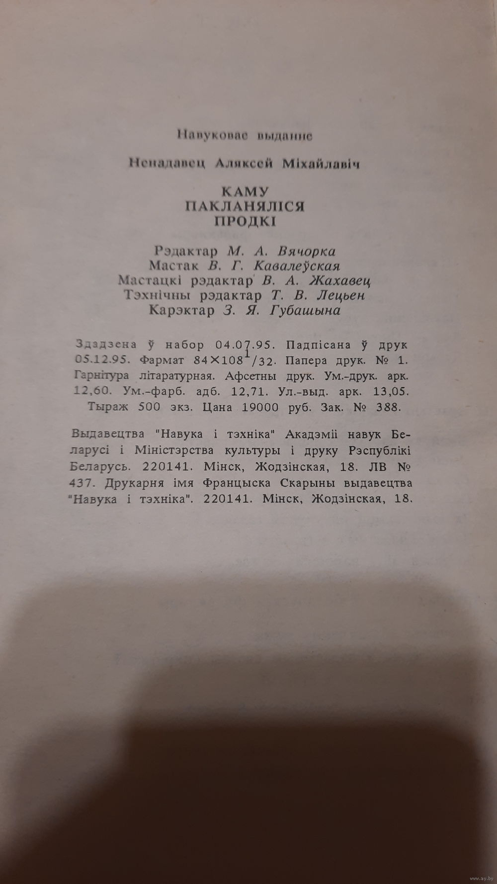 А.М.Ненадавец Каму пакланяліся продкі, Мінск 1996г. + За смугою міфа, Мінск 1999г.