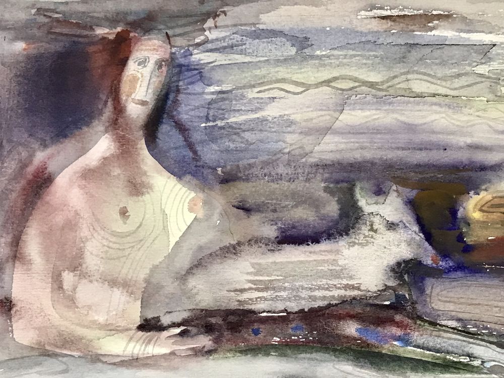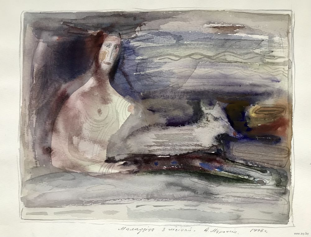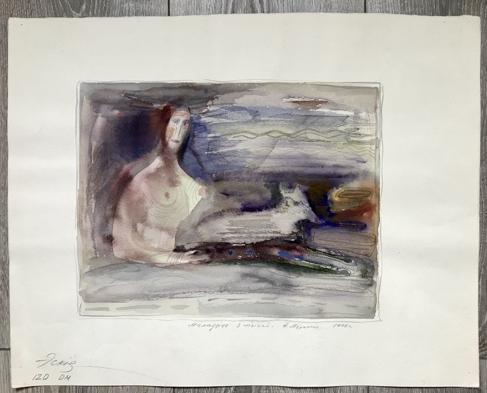 Акварель (эскиз) «Маладзiца з лiсiцай» известного белорусского художника Алеся Мары (А.А.Марочкин), размер 46х36,5см., 1993г.