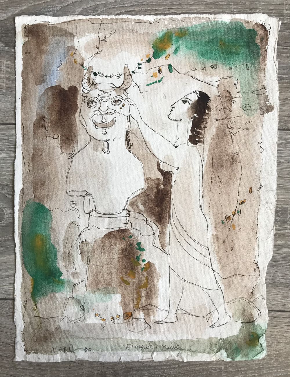 Акварель известного белорусского художника Алеся Мары (А.А.Марочкин). Размер 37х28см., 1980г.