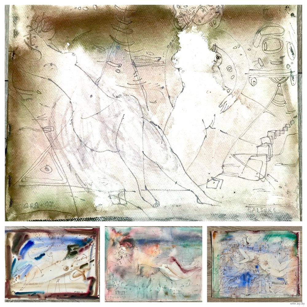 Акварели (смеш.техника). Автор Алесь Мара (Алексей Антонович Марочкин), размер каждой 30х40см.,1997г.