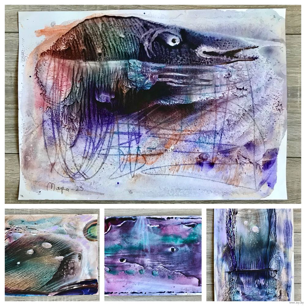 Акварели, смешанная техника известного белорусского художника Алеся Мары (А.А.Марочкин). Размер каждой 42х29,5см., 2023г.