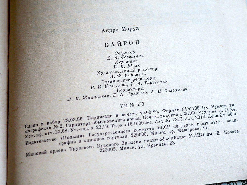 А. Моруа. Байрон. Полымя. 1986г. Состояние.