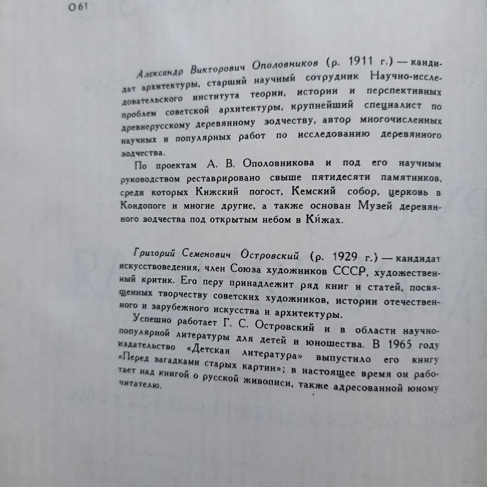 Ополовников А., Островский Г. Русь деревянная. Образы русского деревянного зодчества. В мире прекрасного М Детская литература 1970г. 200с. Твердый переплет, увеличенный формат.