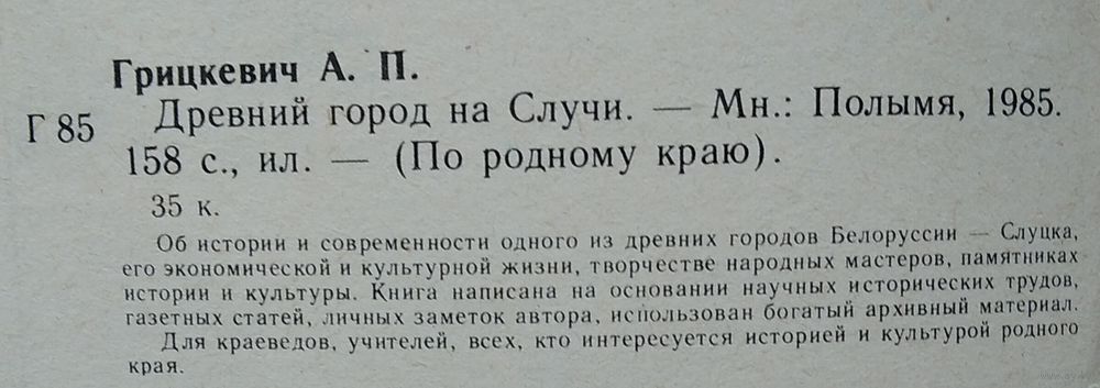 А. П. Грицкевич. Древний город на Случи. Серыя: По родному краю. Минск : Полымя, 1985 г. 158 с. Мягкая обложка.