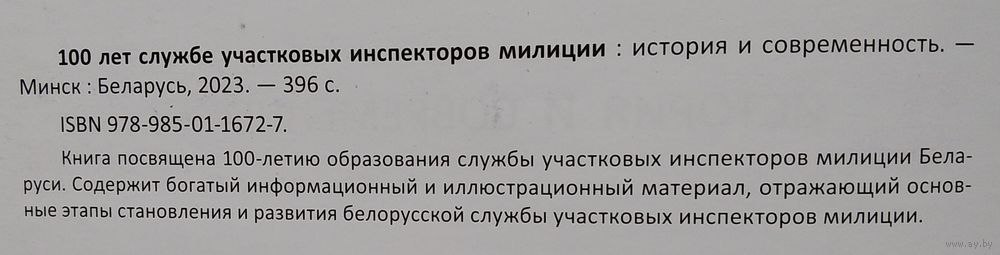 А. С. Жмуровский и др. 100 лет службе участковых инспекторов милиции: история и современность. Альбом Минск : Беларусь, 2023 г. 390 с. Твердый переплет. Энцикл.формат.
