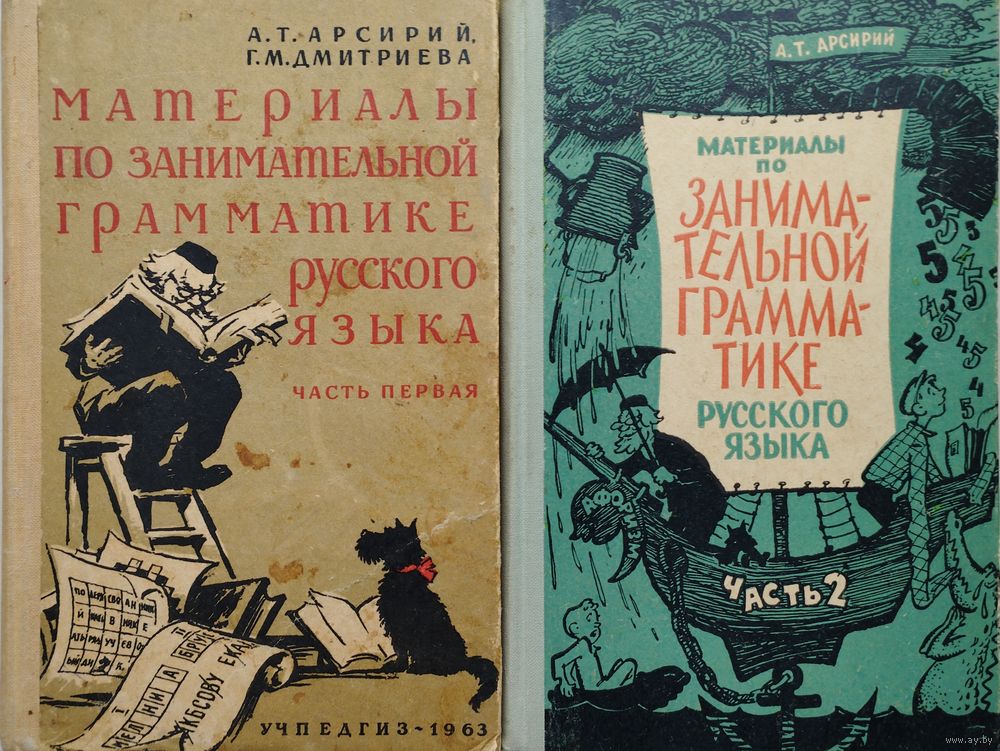 Цена за 2 тома. Большой формат. 240+288 стр. Арсирий А.Т., Материалы по занимательной грамматике русского языка. Часть 1. Авторы: А. Т. Арсирий, Г. М. Дмитриева. (Москва: Учпедгиз, 1963). Настоящий сборник составлен с таким расчетом, чтобы находящиеся в нем практические материалы по русскому языку, носящие занимательный характер, обеспечивали повторение или закрепление знаний по основным разделам грамматики, а также знакомство с важнейшими вопросами лексики современного русского языка. Наряду с этим многие занятия способствуют углублению знаний по русскому языку, обогащению словарного запаса учащихся, развивают смекалку, сообразительность, воспитывают 'морфологическое чутье', столь необходимое каждому культурному человеку, в особенности будущим лингвистам, работникам печати и т.д. Учитель русского языка найдет в сборнике материал почти ко всем основным темам программы. 1-я часть пособия по занимательной грамматике включает материал только по фонетике, морфологии и лексике. Во 2-ю часть входят материалы по фразеологии, синтаксису и стилистике.