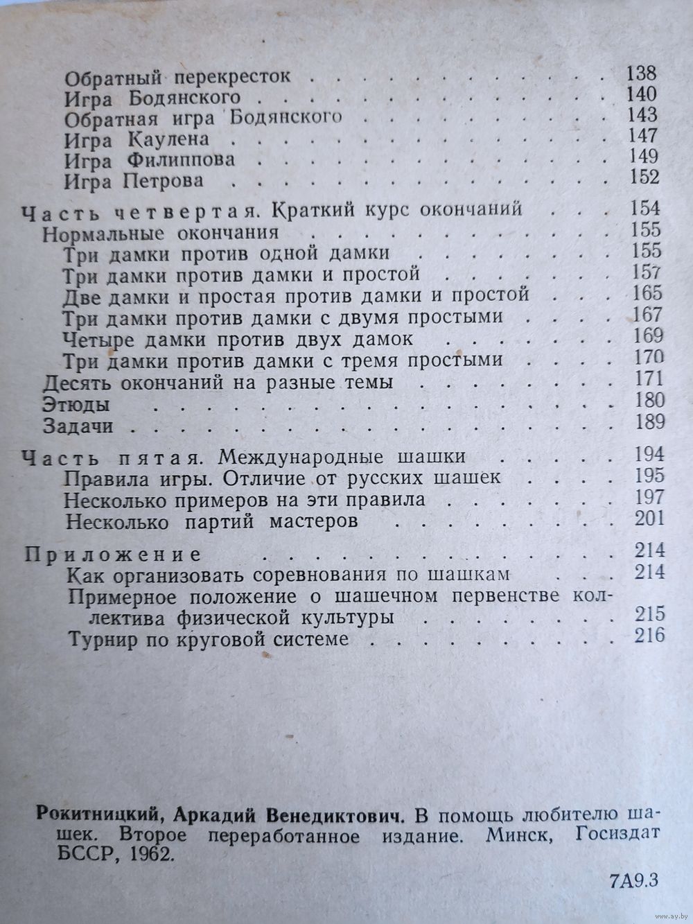 Рокитницкий А. В. - выдающийся популяризатор игры, «отец белорусских шашек». Заслуженный тренер Беларуси (1951), чемпион республики (1952 и 1954), мастер спорта (1956). Воевал, был награжден орденом Красной Звезды, медалями. После войны занимался тренерской и организационной спортивной деятельностью, редактировал во многих изданиях шашечные отделы, вел посвященные шашкам телепрограммы. Книга будет интересна всем любителям шашек. В ней изложены основы данной игры, рассматриваются различные игровые ситуации.