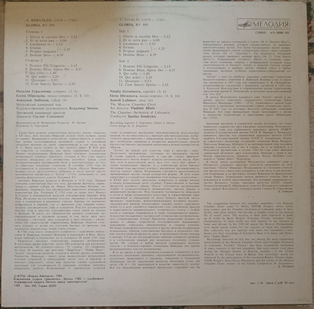 | Исполнитель | Московский камерный хор, Литовский камерный оркестр, Н. Герасимова, Е. Образцова, С. Сондецкис. |