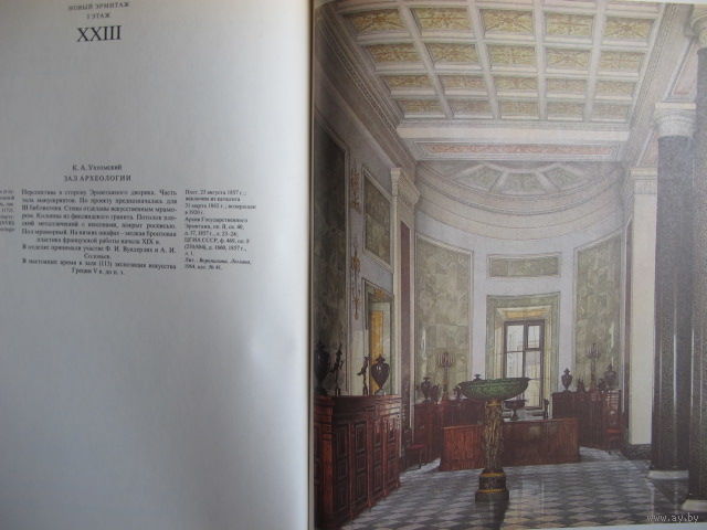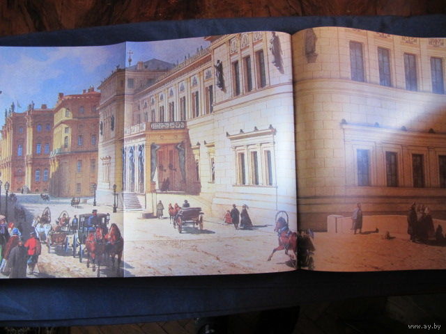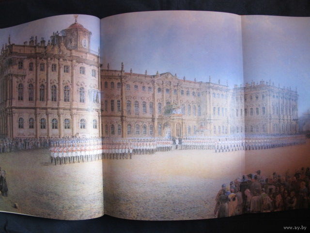 Отпечатанный в Лейпциге высококачественный альбом большого формата (32х25 см) содержит более 100 красочных акварелей и рисунков, представляющих архитектурные виды, декоративное убранство, экспозицию картин Эрмитажа и Зимнего дворца середины XIX века. Работы были выполнены мастерами, свободно владевшими соответствующей техникой.